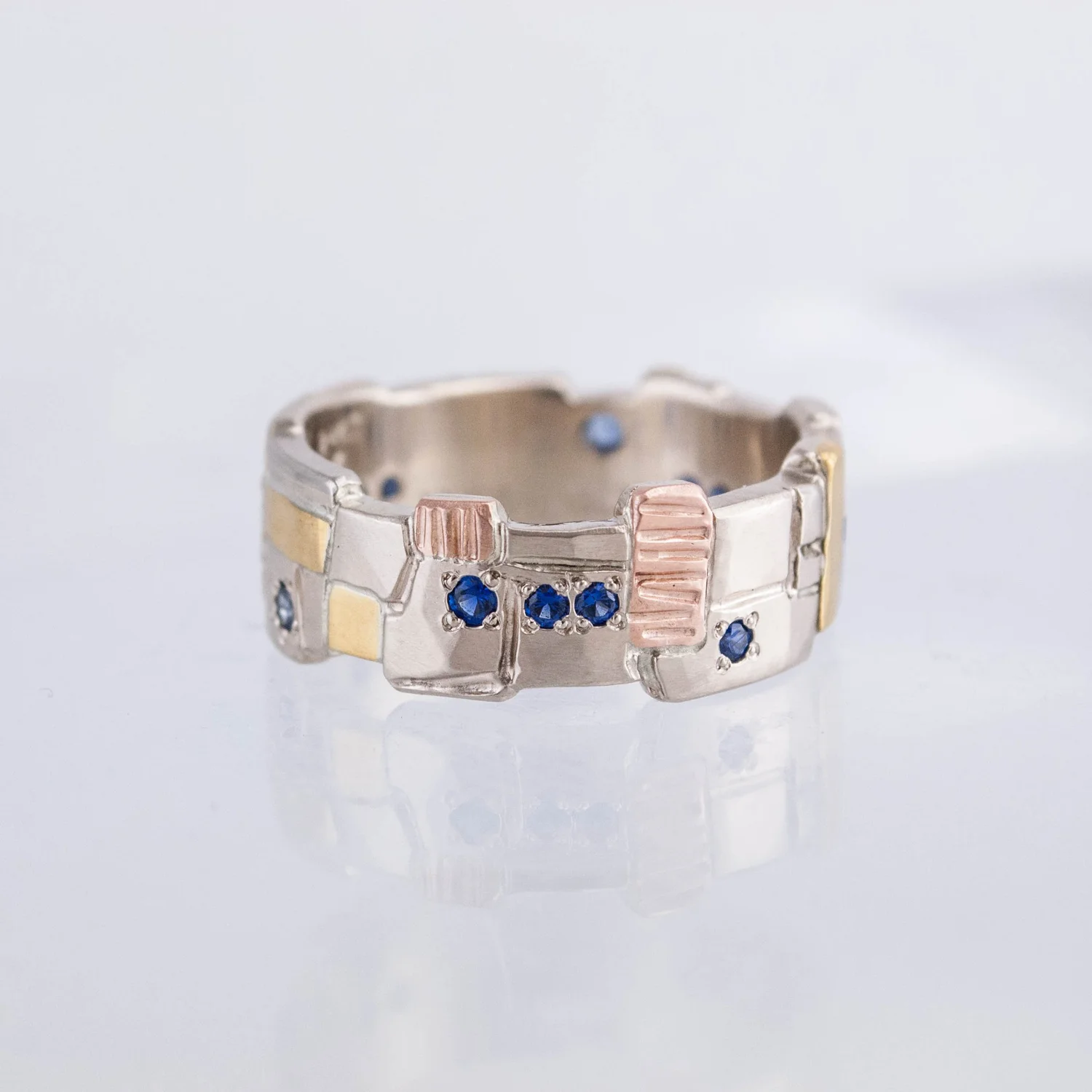 Pair of Desert Wedding Bands with Sapphires and Diamonds