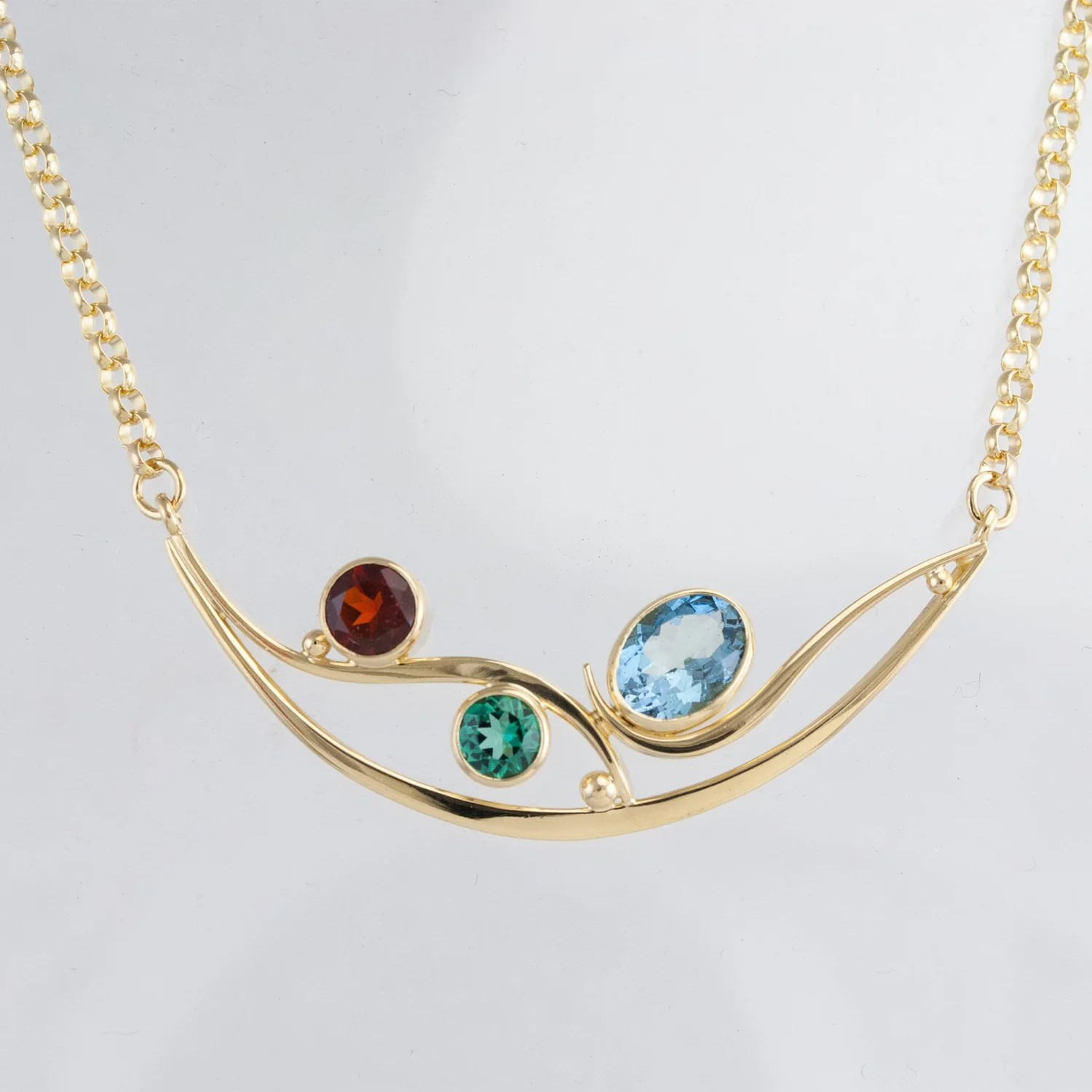 Custom GEO Link Necklace with Amethyst, Aquamarine and Citrine